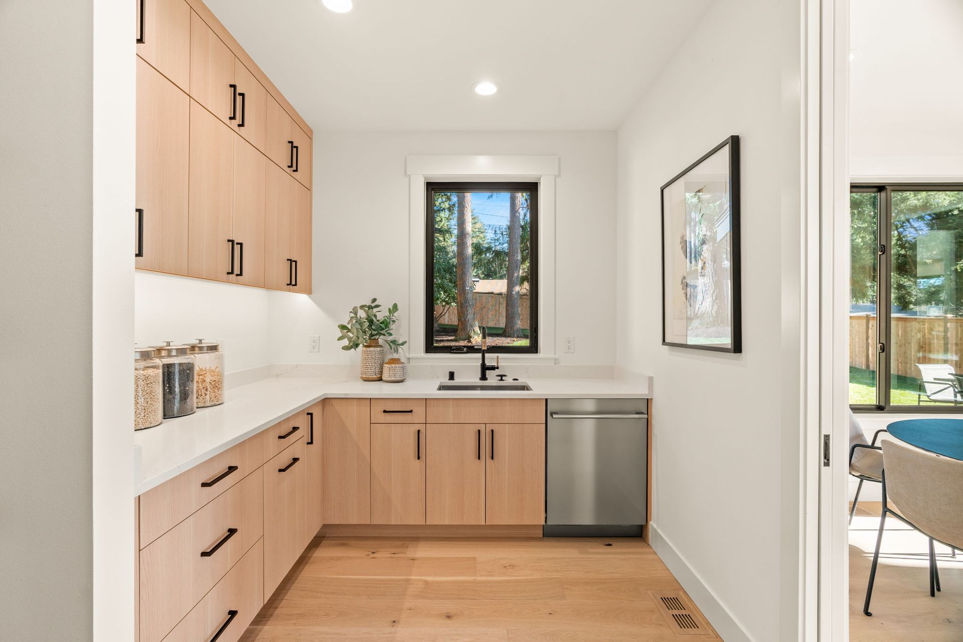 The main kitchen has premium finishes and is complemented by a walk-in pantry and a scullery kitchen with a second dishwasher, ideal for entertaining and everyday ease. A main-floor guest suite serves as a true retreat, complete with a separate sitting area, private bathroom, washer/dryer prewire, and its own covered patio.